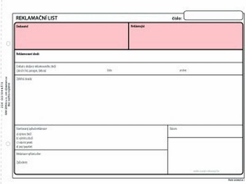 Reklamační listy formátu A5 samopropisovací.