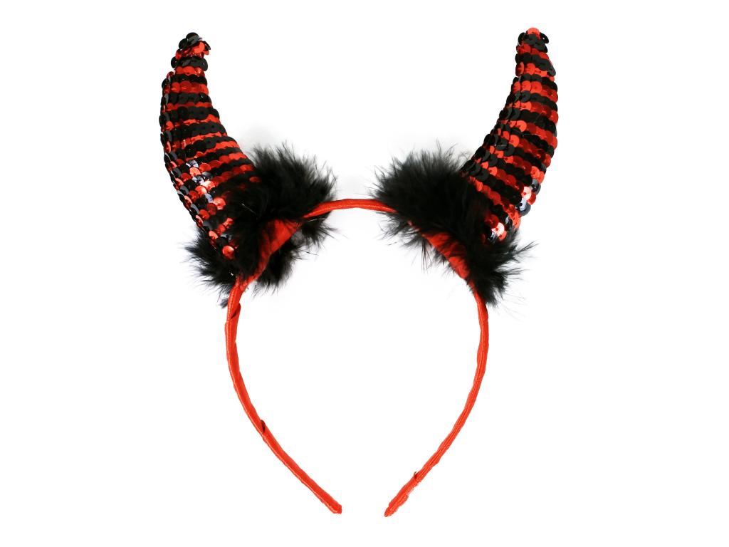 Úžasné čertí rohy na saténové čelence jsou zdobeny