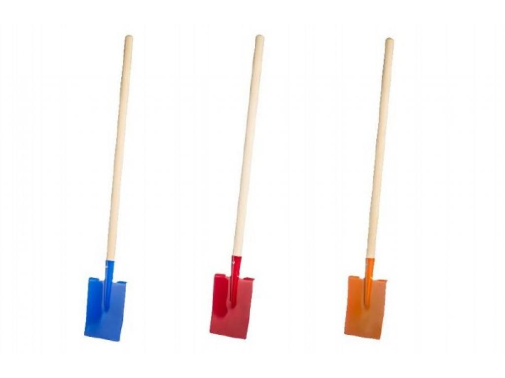 Rýč rovný kovový s dřevěnou násadou o délce 80 cm.
