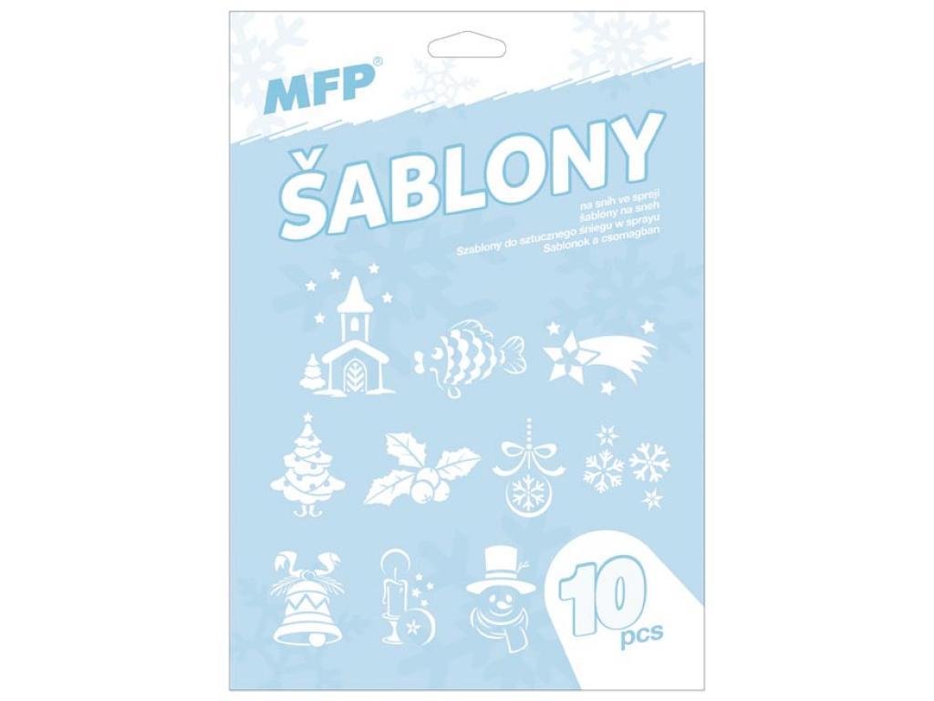- 10 ks šablon s různými vánočními motivy (kostel,