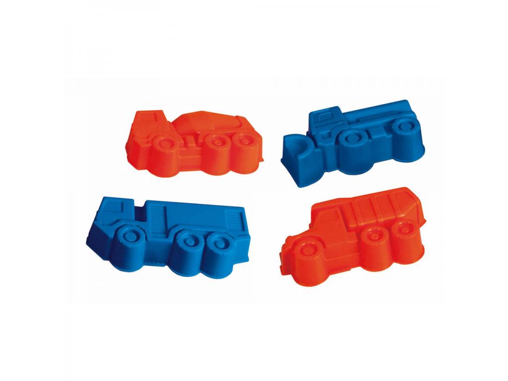 tvaru buldozeru, míchačky a modrého kamionu. Cena