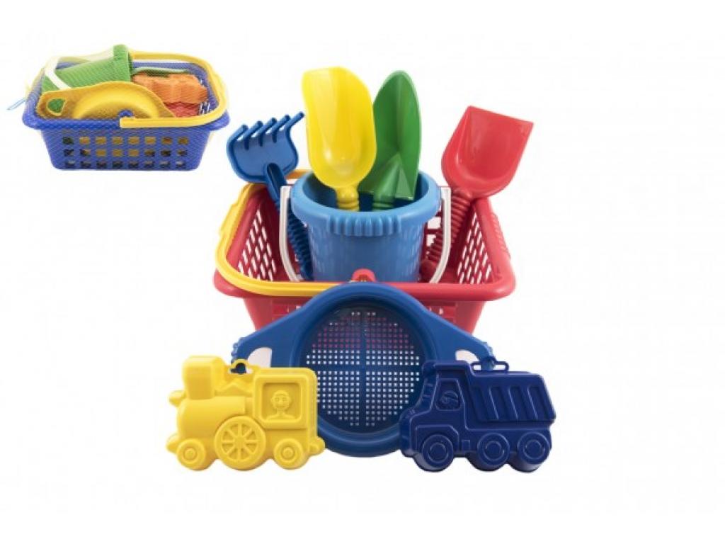 Sada obsahuje 2 bábovky, rýč, lopatku, hrabičky,