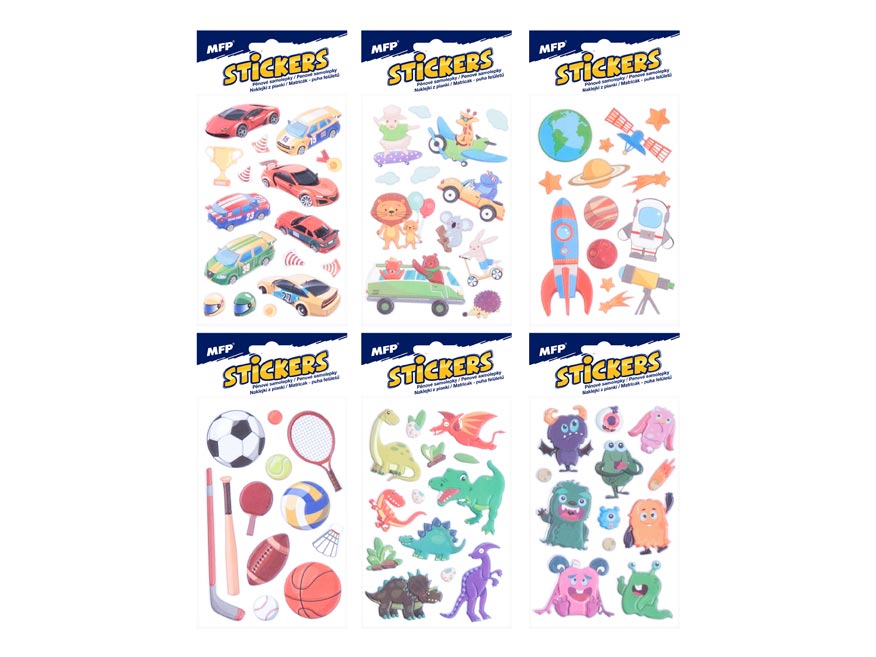 Samolepky s obrázky dinosaurů, příšerek, vesmíru,