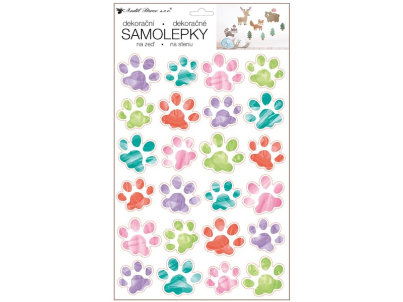 druhy, kapky, hvězdy, tlapky.