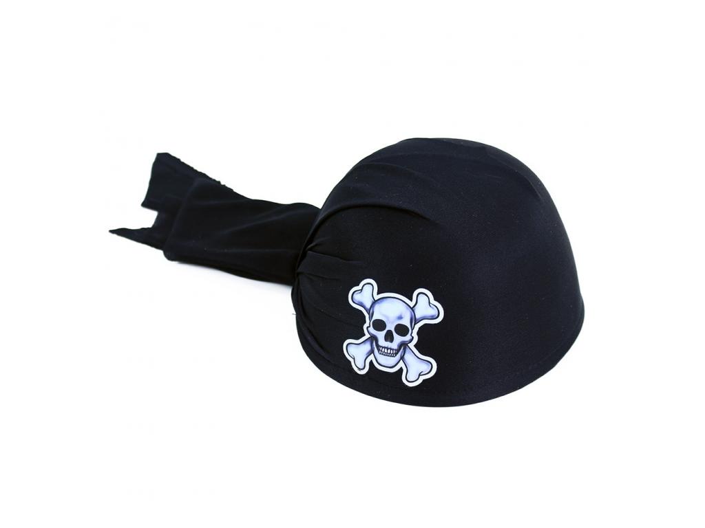 Šátek je zdoben bílým potiskem s motivem lebky.