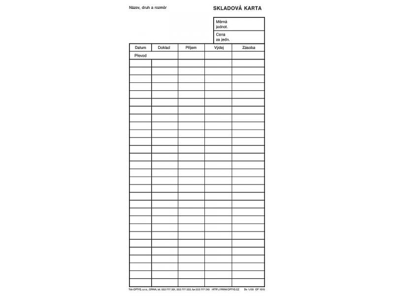 Skladová karta malá o rozměru 10 x 21 cm, gramáž