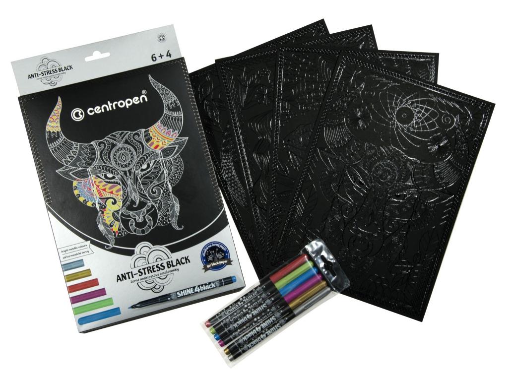 Anitistress black omalovánky Centropen + metalické