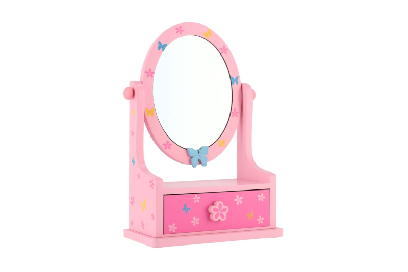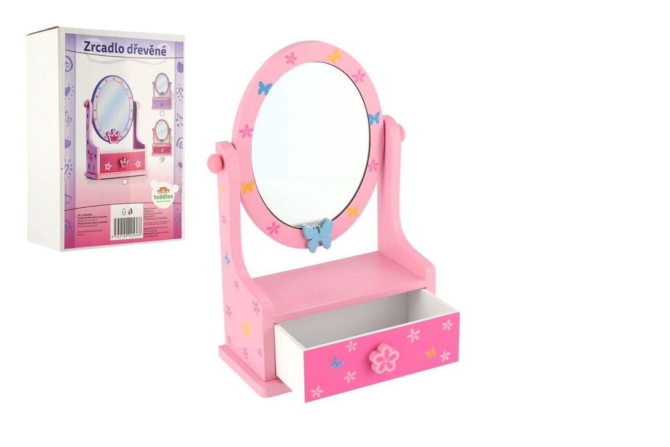 Zrcadlo, šperkovnice se zásuvkou. Materiál dřevo.