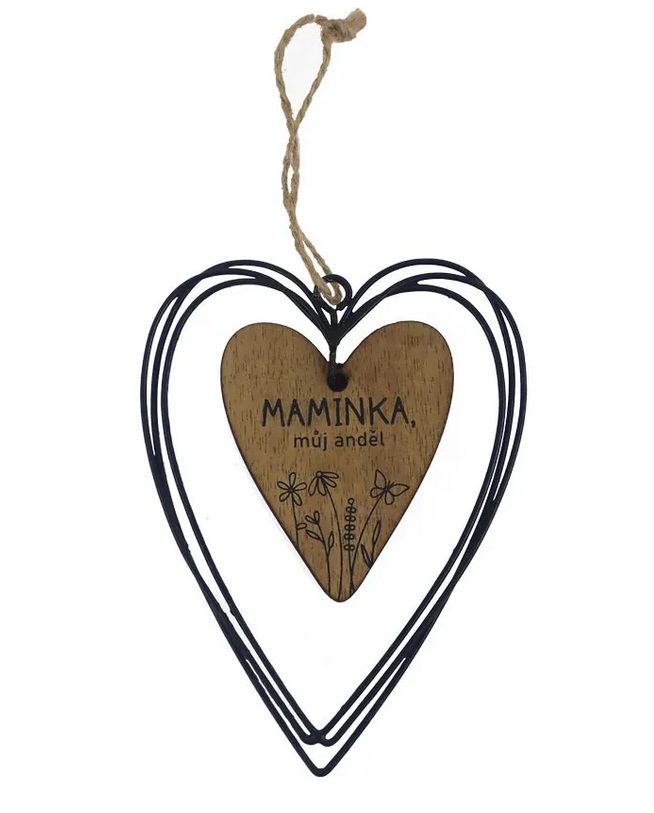 Dekorační srdce k zavěšení s nápisem - MAMINKA MŮJ
