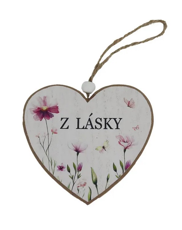 Dekorační srdce k zavěšení s nápisem - Z LÁSKY.