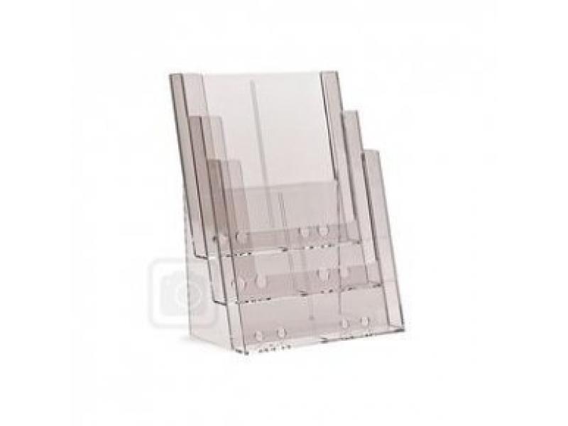 Stojánek vyrobený z průhledného akrylu s 3 kapsami