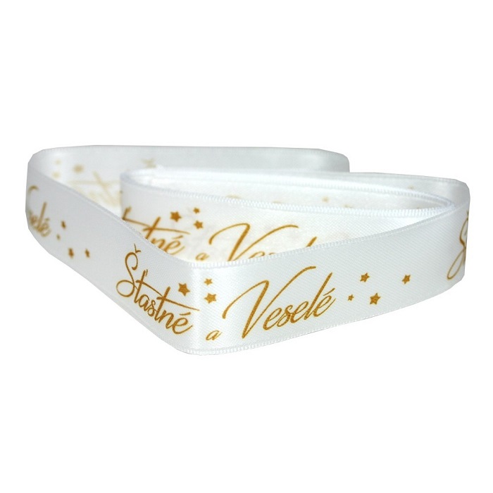 Vánoční stuha – Šťastné a veselé, 2 m × 2,5 cm