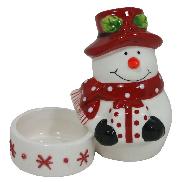 Veselý keramický svícen se sněhulákem rozveselí
