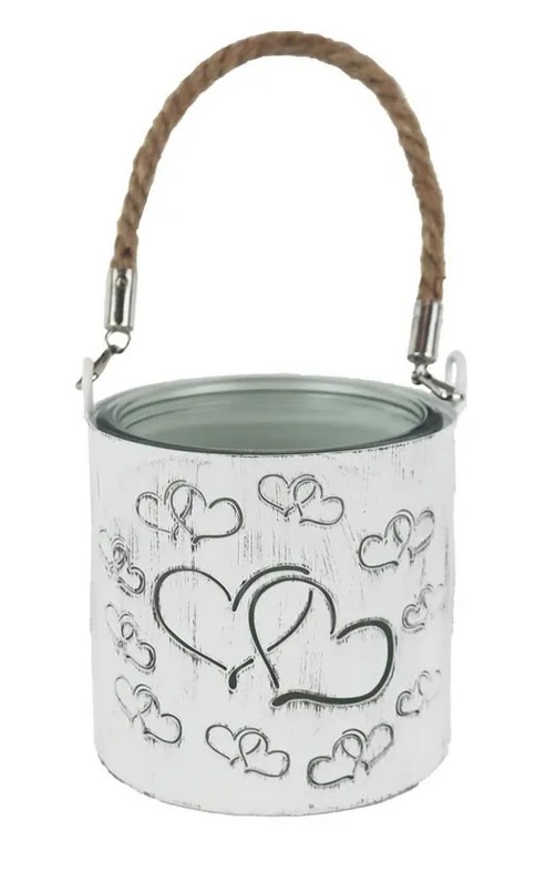 Dekorační svícen na jednu svíčku se srdíčky.