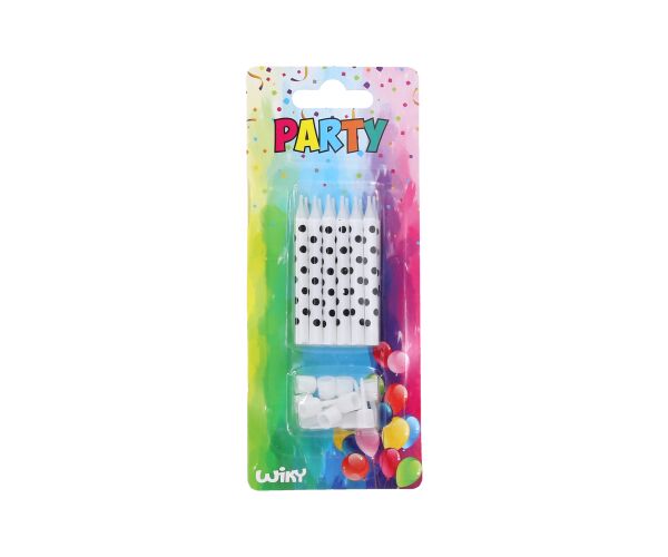 Svíčky 12ks + stojánky 12ks černé tečky.