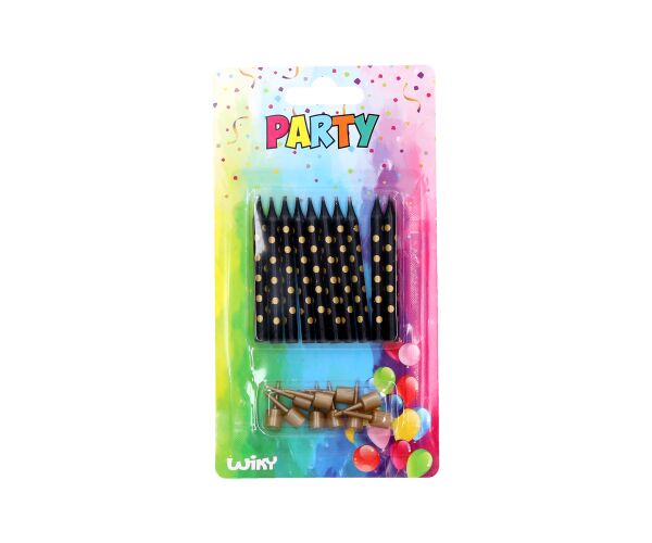 Svíčky 10ks + stojánky 10ks zlaté tečky.