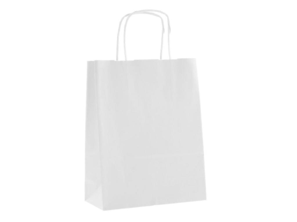 Bílá papírová taška je vyrobena z hladkého papíru