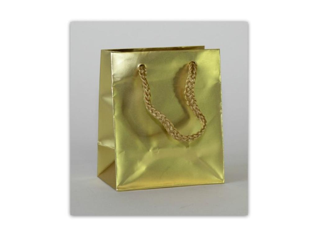 Dárková taška hladká zlatá, rozměr 10 x 6,5 x 12