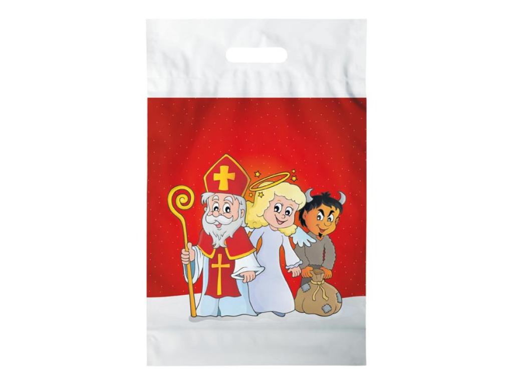 Igelitová taška s průhmatem v Mikulášském motivu.