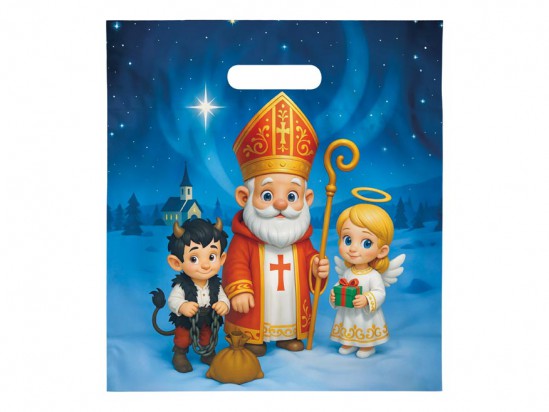 Igelitová taška s průhmatem v Mikulášském motivu.