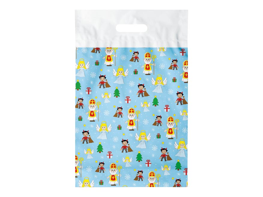 Igelitová taška s průhmatem v Mikulášském motivu.