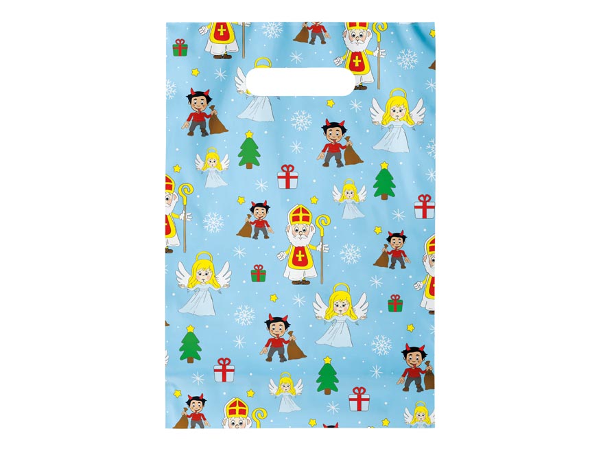 Igelitová taška s průhmatem v Mikulášském motivu.