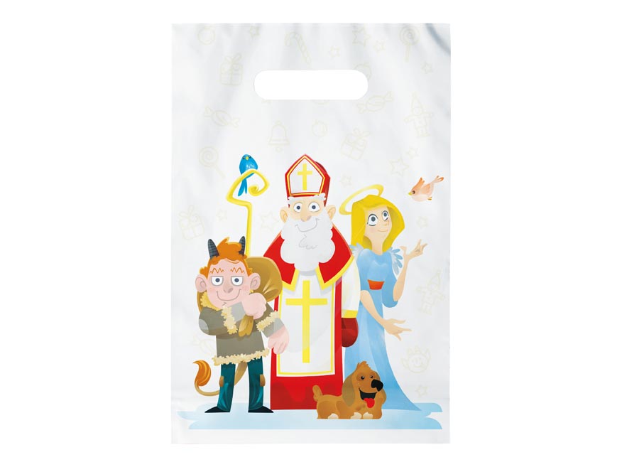 Igelitová taška s průhmatem v Mikulášském motivu.