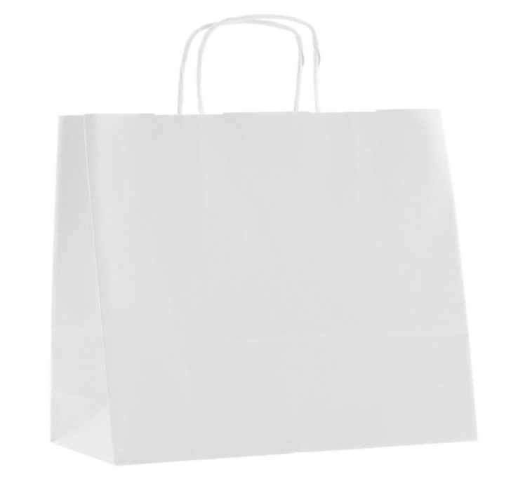 Bílá papírová taška je vyrobena z hladkého papíru