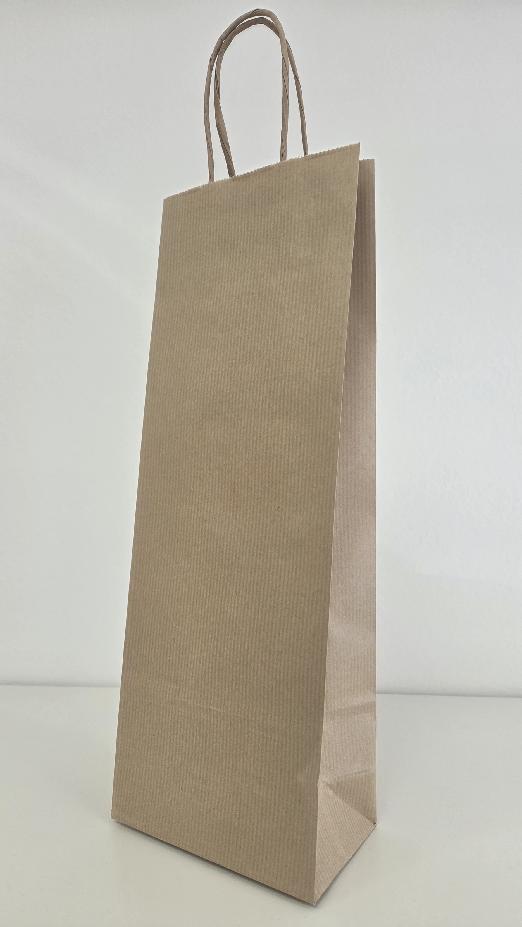 Taška papírová dárková na láhev, hnědá, 14+8x39