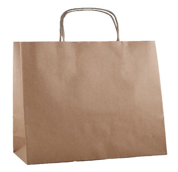 Hnědá papírová taška je vyrobena z hladkého papíru