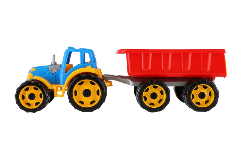Barevný traktor s vlekem je vhodný pro každého