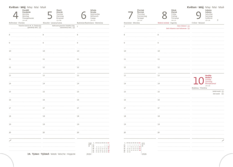 Diář obsahuje: osobní údaje, plánovač dovolené