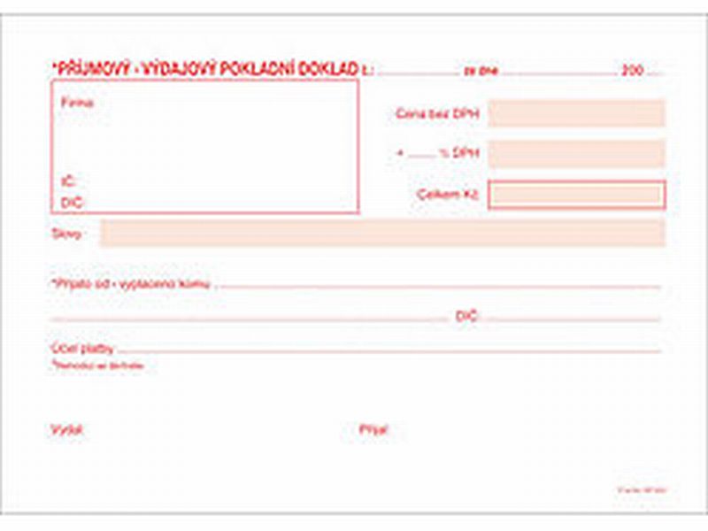 Univerzální pokladní doklad obyčejný. Obsahuje 50