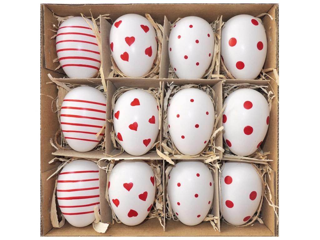 Vejce plastová, 12 kusů, červené zdobení