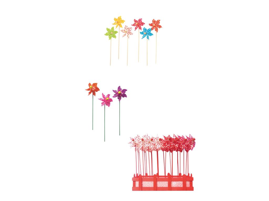 Větrník s velkými puntíky, 6 barev, 9 cm + špejle