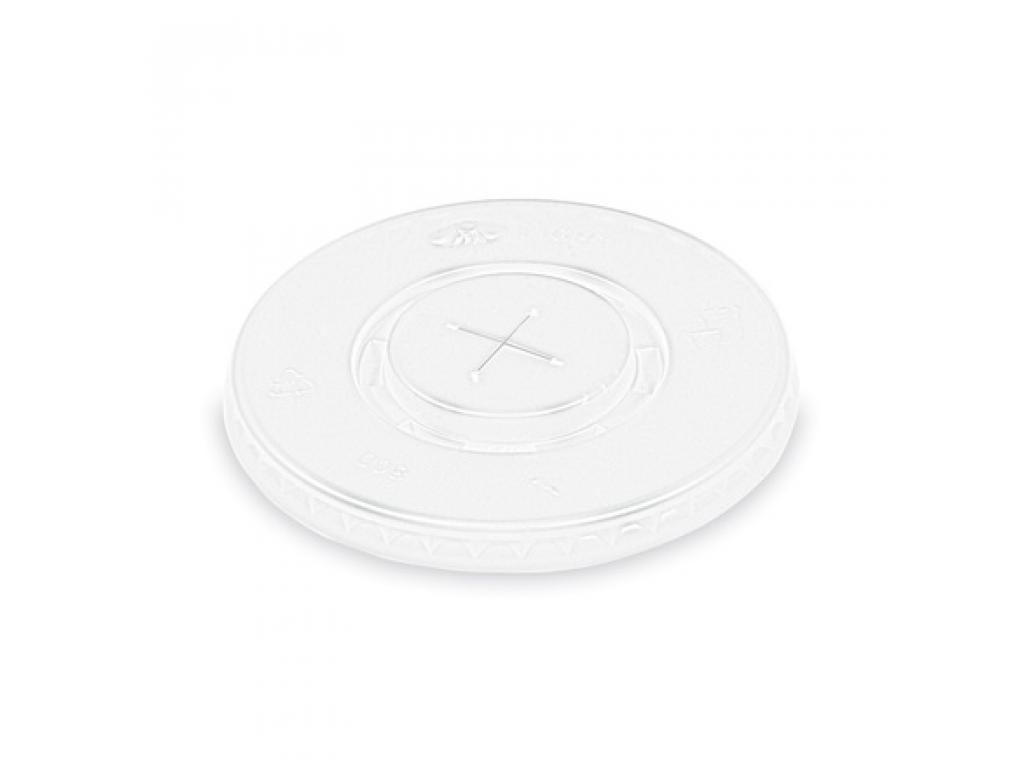 Víčko na kelímky o průměru 90 mm s křížovým dnem.