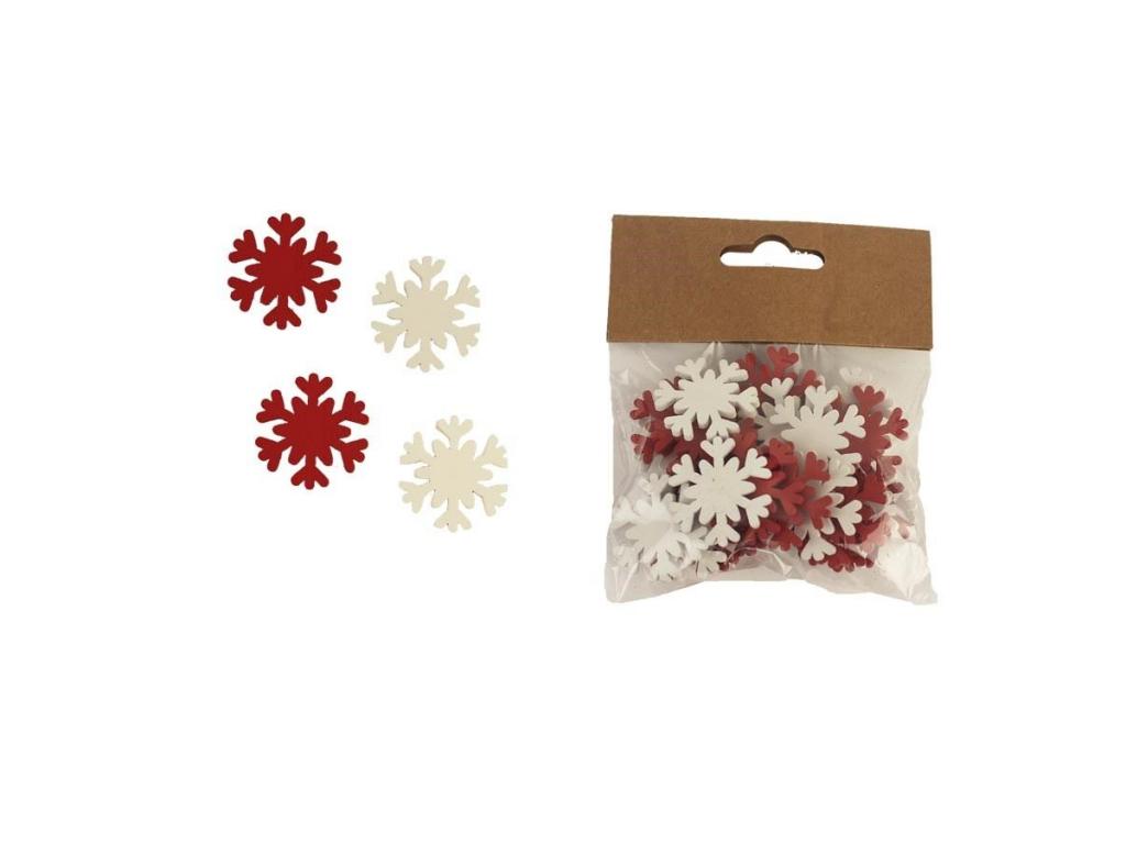 Vločka 3cm-24ks, k nalepení, červená, bílá