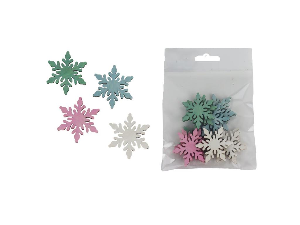 Vločka 4cm-12ks, modrá, zelená, bílá, růžová