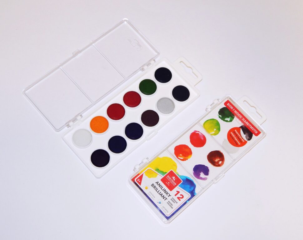 Vodové barvy o průměru tablet 22,5 mm s 12ti