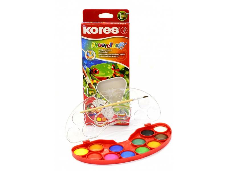 Vodové barvy KORES, průměr 30 mm. Vodovky mají 12