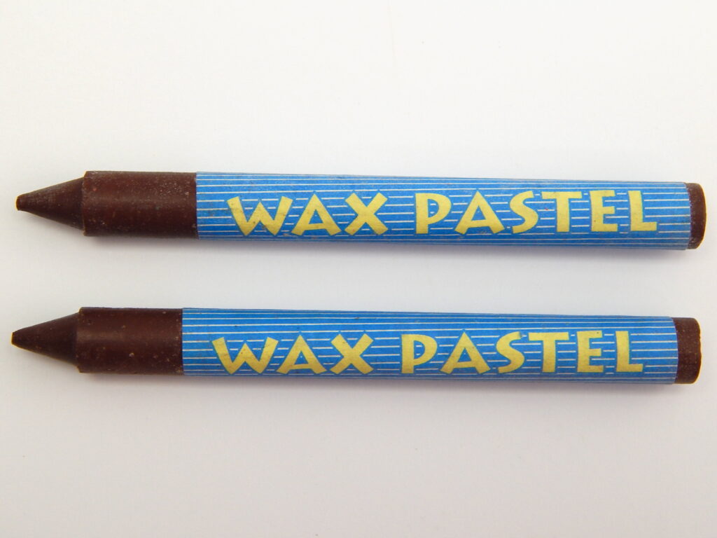 pruhovaným se žlutým textem WAX CRAYON.
