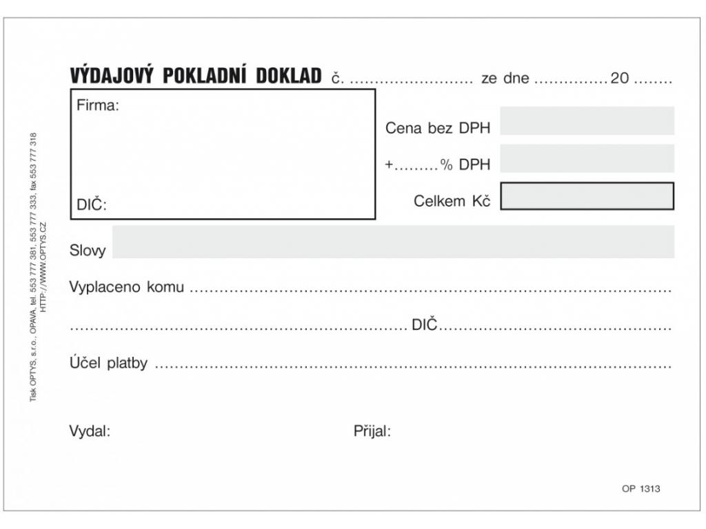 Výdajový pokladní doklad, samopropisující, Optys