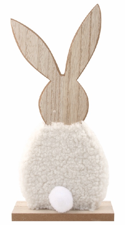 Zajíc dřevěný v bílém kožíšku 11 × 23 × 4 cm, na