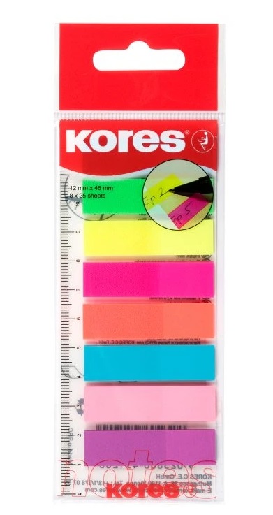 Balení obsahuje 8 barev po 25 kusech záložek o