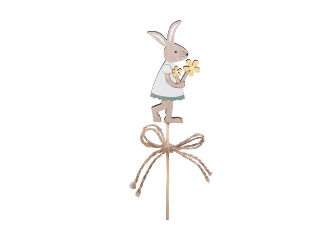 Velikonoční dřevěný zápich zajíc s kytkou. Zápich
