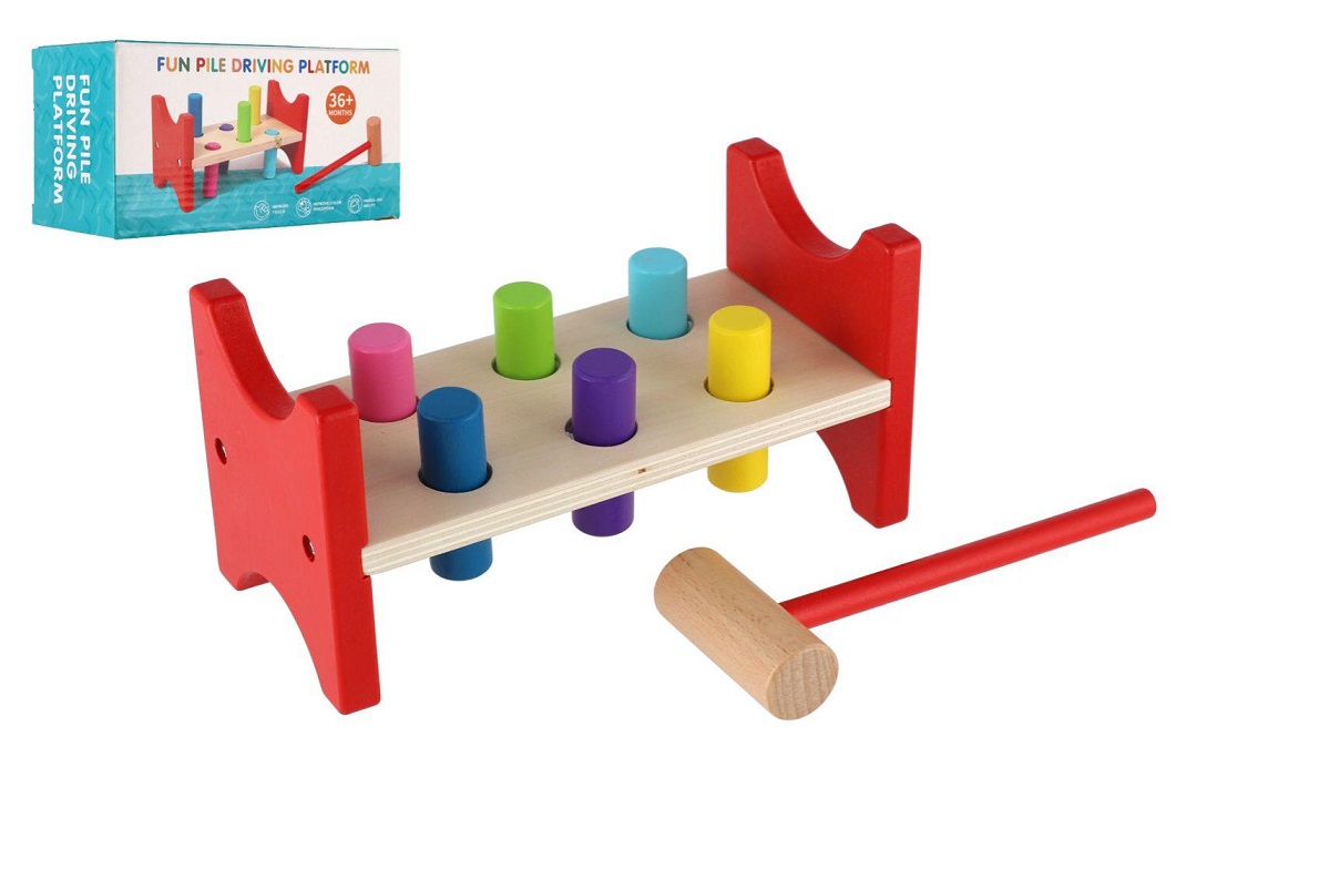 Klasická dřevěná zatloukačka s barevnými kolíčky a