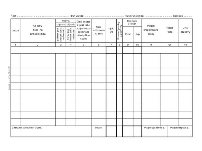 Záznamy o provozu osobního vozidla. Obsahuje 50