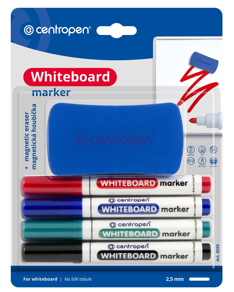 vodorovné poloze.Sada obsahuje 4 kusy fixů černý,