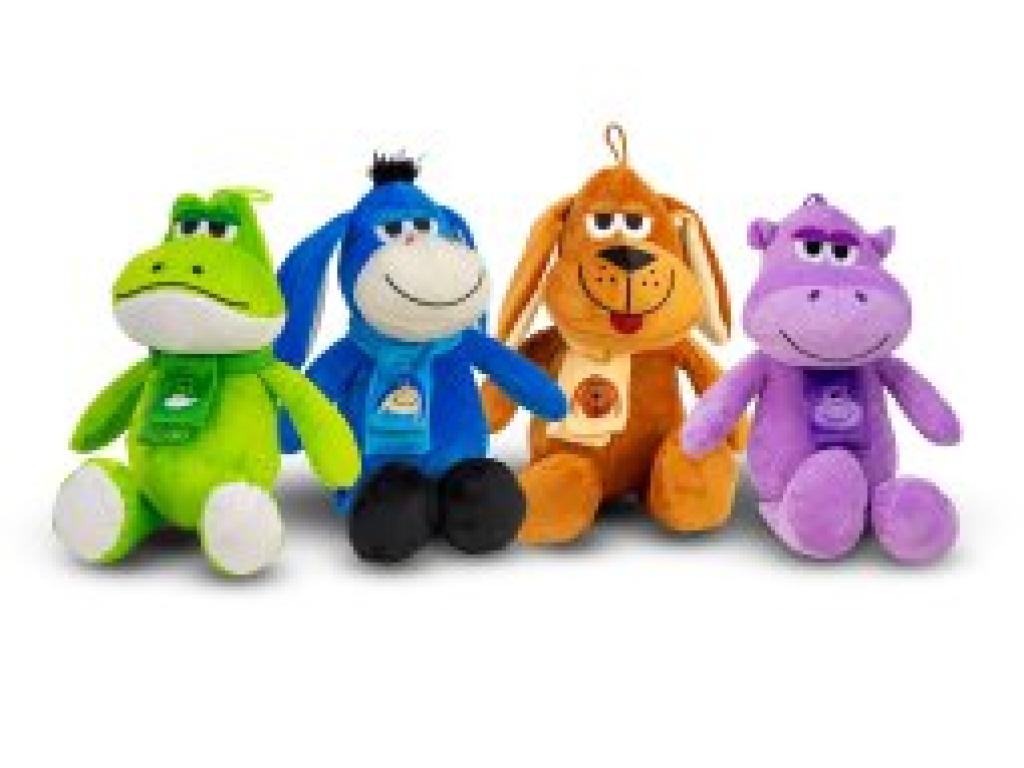 Srandovní plyšová zvířátka, různé druhy a barvy.